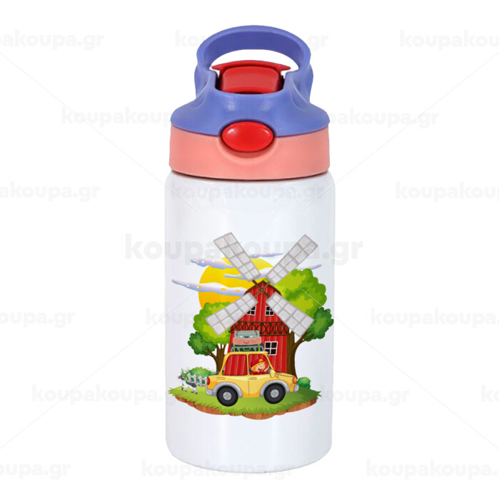 Toy car, Children's hot water bottle, stainless steel, with safety straw, pink/purple (350ml)