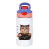 Cool cat, Children's hot water bottle, stainless steel, with safety straw, pink/purple (350ml)