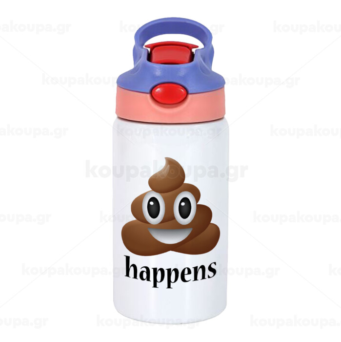 Shit Happens, Children's hot water bottle, stainless steel, with safety straw, pink/purple (350ml)