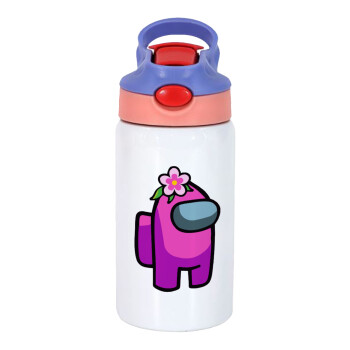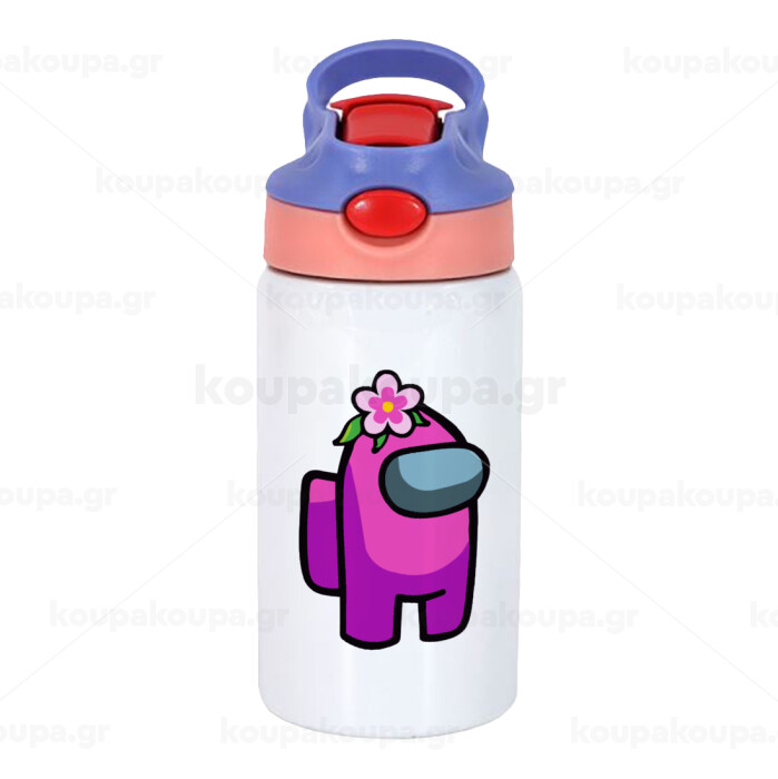 Among US girl, Children's hot water bottle, stainless steel, with safety straw, pink/purple (350ml)