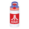 atari, Children's hot water bottle, stainless steel, with safety straw, pink/purple (350ml)