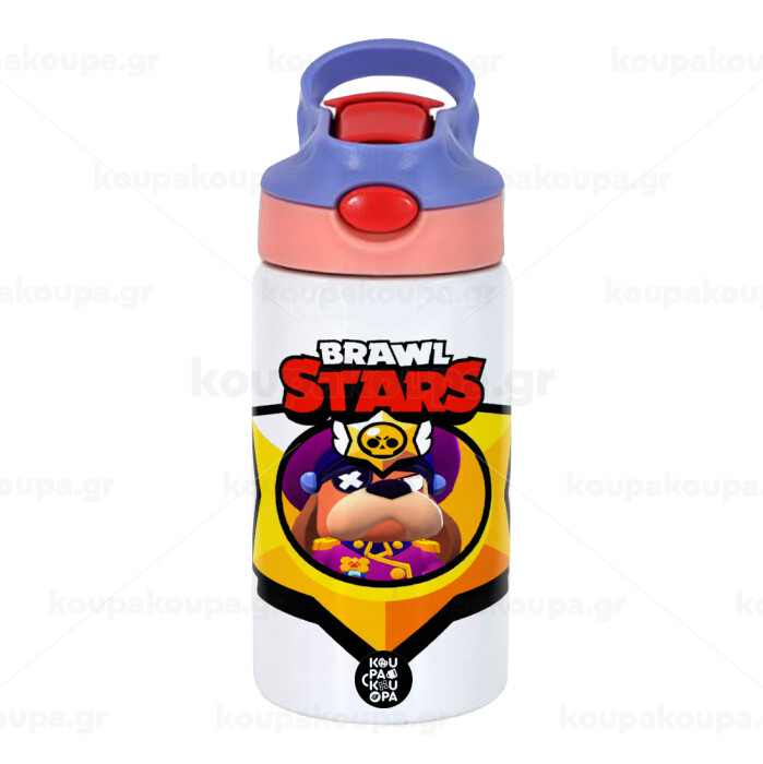 Brawl Stars Ruffs, Children's hot water bottle, stainless steel, with safety straw, pink/purple (350ml)