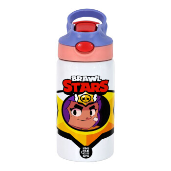 Brawl Stars Shelly, Children's hot water bottle, stainless steel, with safety straw, pink/purple (350ml)
