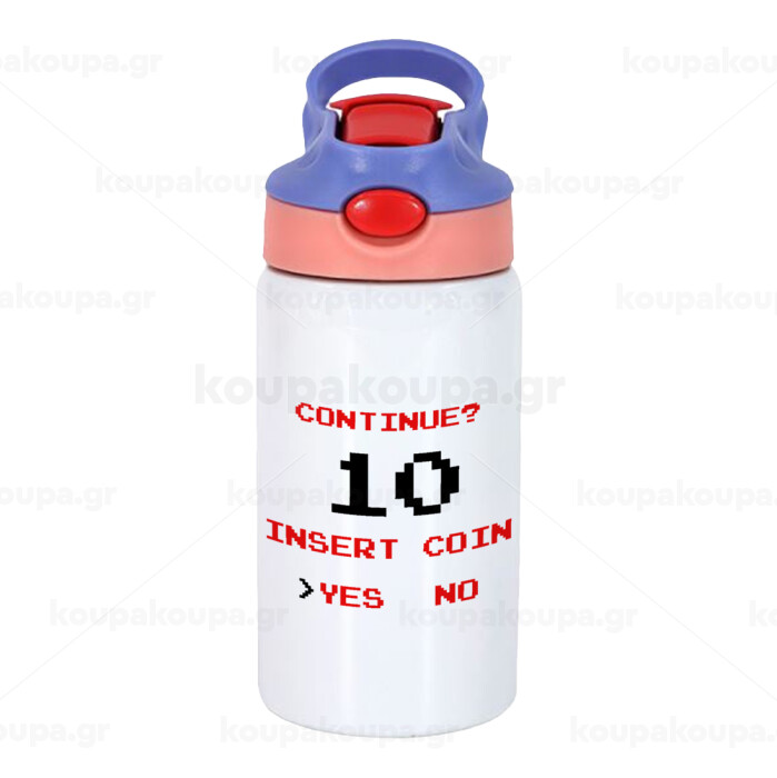 Continue? YES - NO, Children's hot water bottle, stainless steel, with safety straw, pink/purple (350ml)
