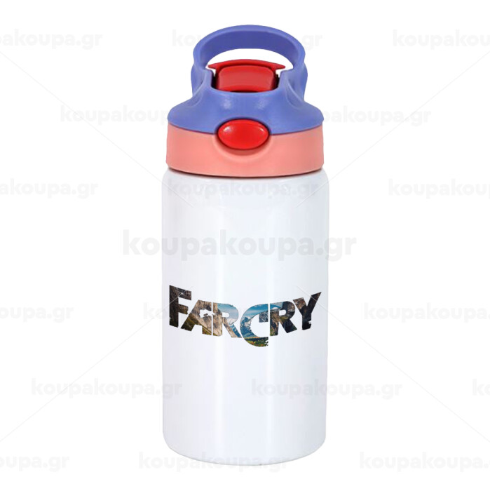 Farcry, Children's hot water bottle, stainless steel, with safety straw, pink/purple (350ml)