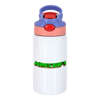 Minecraft logo green, Children's hot water bottle, stainless steel, with safety straw, pink/purple (350ml)
