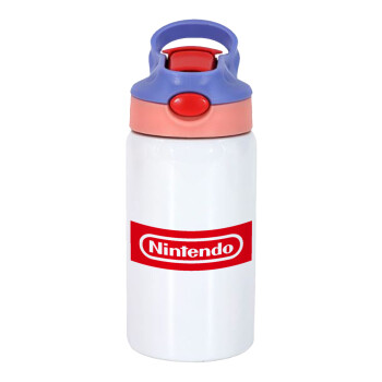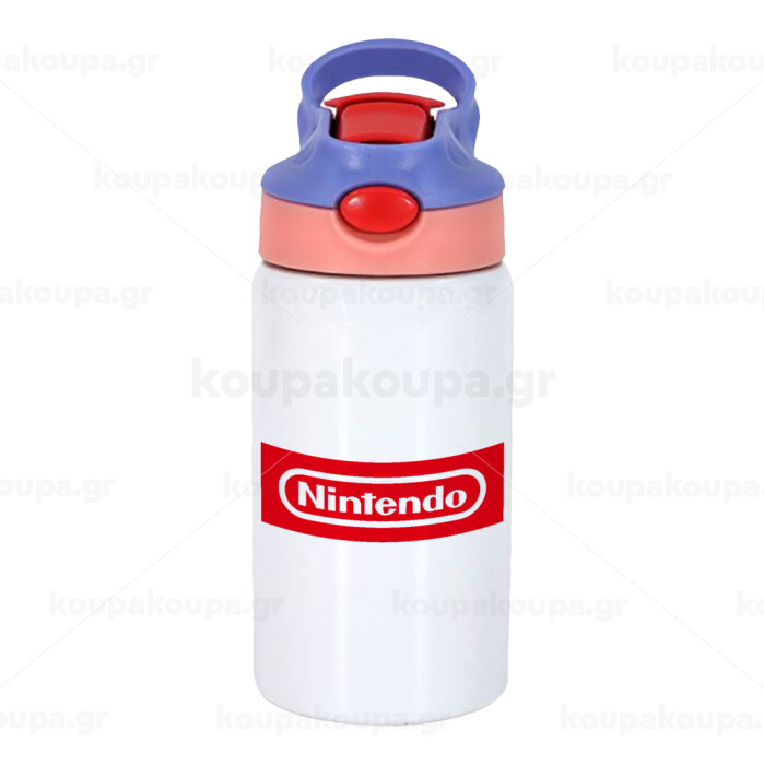 Nintendo, Children's hot water bottle, stainless steel, with safety straw, pink/purple (350ml)