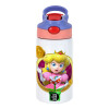 Princess Peach Toadstool, Children's hot water bottle, stainless steel, with safety straw, pink/purple (350ml)