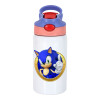 Sonic the hedgehog, Children's hot water bottle, stainless steel, with safety straw, pink/purple (350ml)