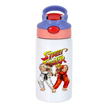 Street fighter, Children's hot water bottle, stainless steel, with safety straw, pink/purple (350ml)