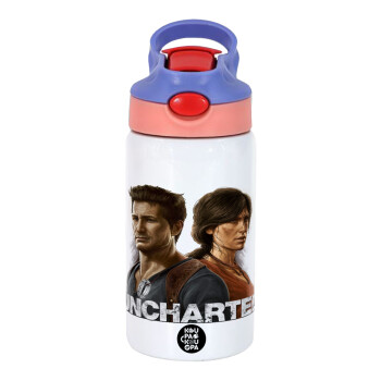 Uncharted, Children's hot water bottle, stainless steel, with safety straw, pink/purple (350ml)