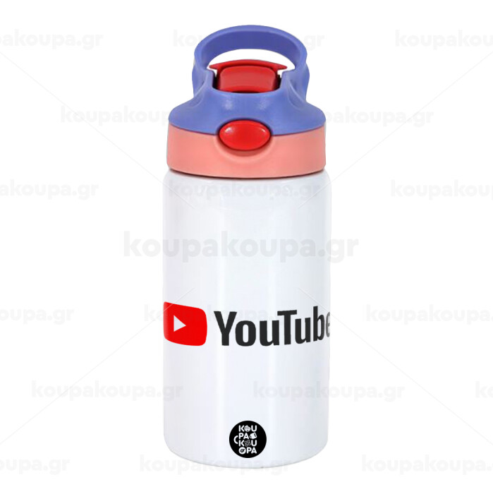 Youtube, Children's hot water bottle, stainless steel, with safety straw, pink/purple (350ml)