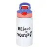 Believe in your self, Children's hot water bottle, stainless steel, with safety straw, pink/purple (350ml)