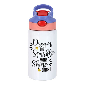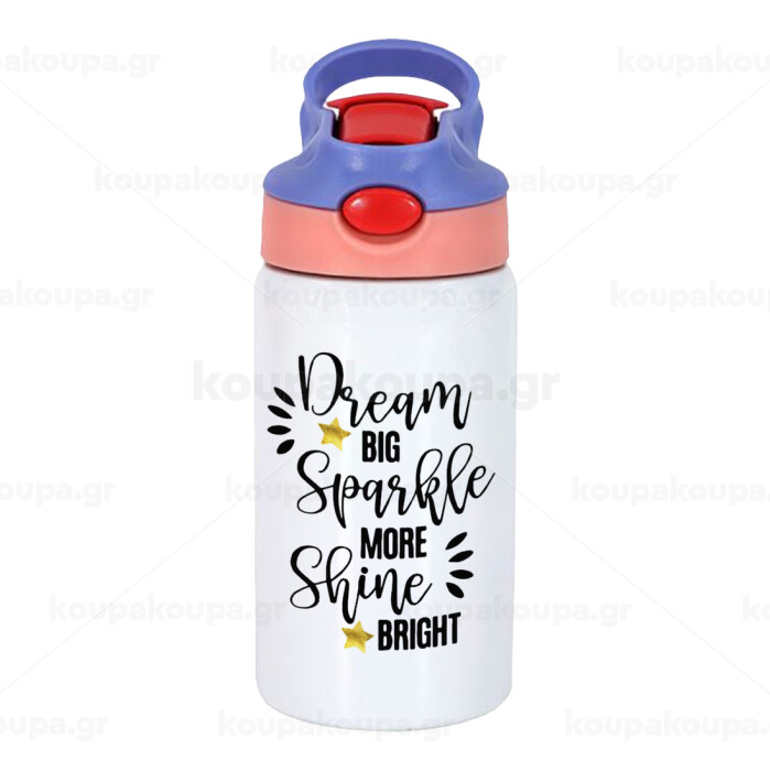 Dream big, Sparkle more, Shine bright, Children's hot water bottle, stainless steel, with safety straw, pink/purple (350ml)
