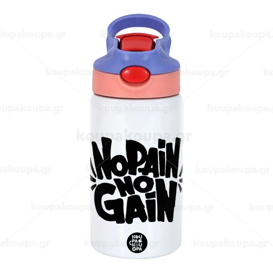 No pain no gain, Children's hot water bottle, stainless steel, with safety straw, pink/purple (350ml)