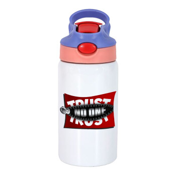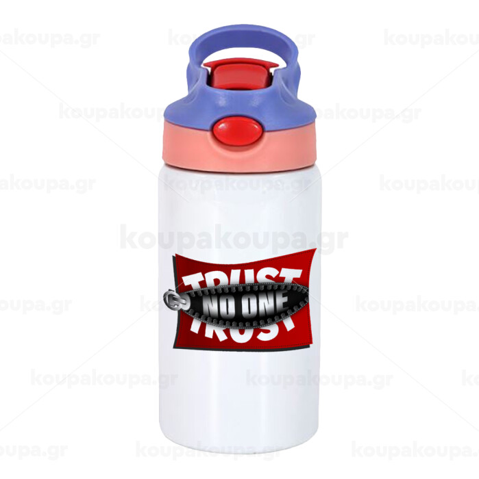 Trust no one... (zipper), Children's hot water bottle, stainless steel, with safety straw, pink/purple (350ml)
