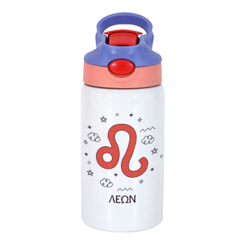 Ζώδια Λέων, Children's hot water bottle, stainless steel, with safety straw, pink/purple (350ml)
