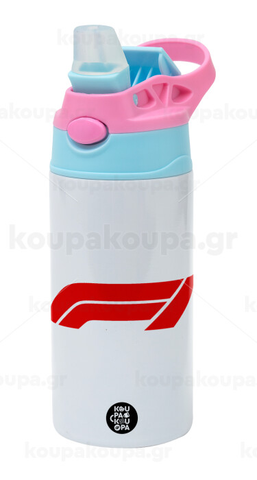 Formula 1, Children's hot water bottle, stainless steel, with safety straw, Pink/BlueCiel (360ml) BPA FREE
