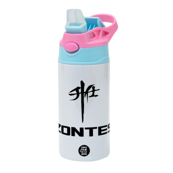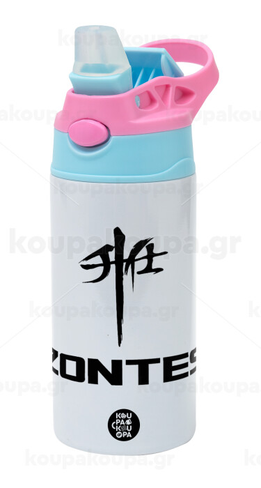 ZONTES, Children's hot water bottle, stainless steel, with safety straw, Pink/BlueCiel (360ml) BPA FREE