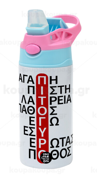 Πιτόγυρο πόθος, Children's hot water bottle, stainless steel, with safety straw, Pink/BlueCiel (360ml) BPA FREE
