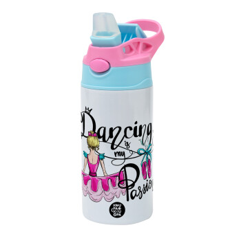 Dancing is my Passion, Children's hot water bottle, stainless steel, with safety straw, Pink/BlueCiel (360ml) BPA FREE