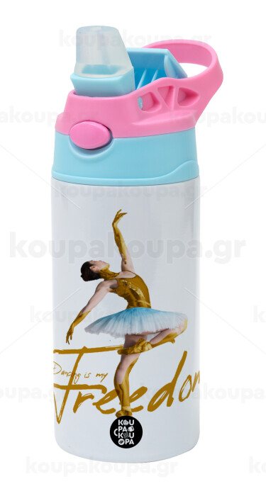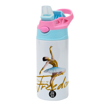 Gold Dancer, Children's hot water bottle, stainless steel, with safety straw, Pink/BlueCiel (360ml) BPA FREE