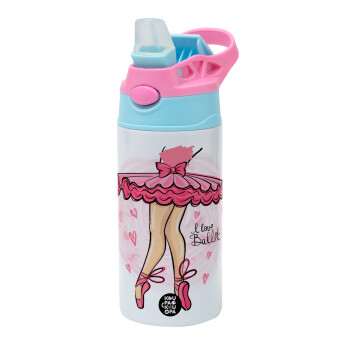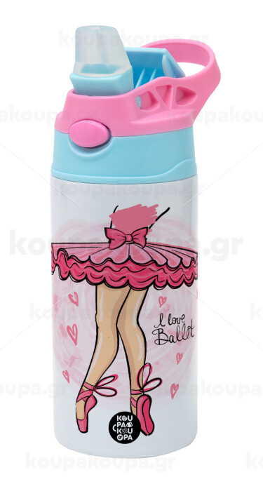I Love Ballet, Children's hot water bottle, stainless steel, with safety straw, Pink/BlueCiel (360ml) BPA FREE