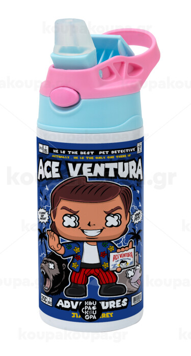 Ace Ventura: Pet Detective, Children's hot water bottle, stainless steel, with safety straw, Pink/BlueCiel (360ml) BPA FREE