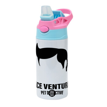 Ace Ventura Pet Detective, Children's hot water bottle, stainless steel, with safety straw, Pink/BlueCiel (360ml) BPA FREE