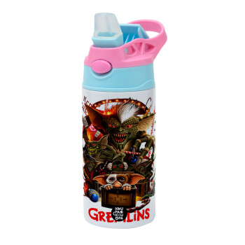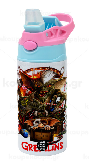 Gremlins, Children's hot water bottle, stainless steel, with safety straw, Pink/BlueCiel (360ml) BPA FREE