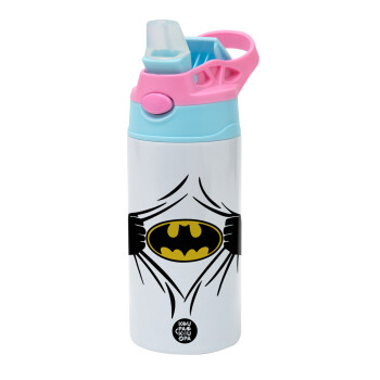 Hero batman, Children's hot water bottle, stainless steel, with safety straw, Pink/BlueCiel (360ml) BPA FREE