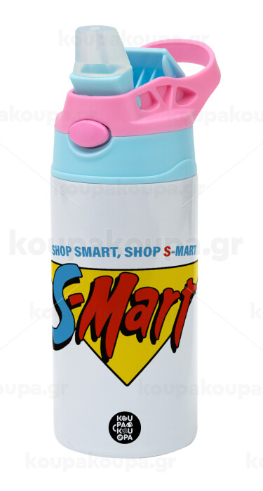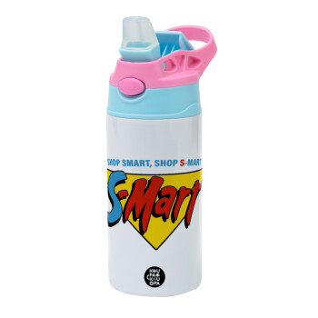 S-mart Evil Dead, Children's hot water bottle, stainless steel, with safety straw, Pink/BlueCiel (360ml) BPA FREE
