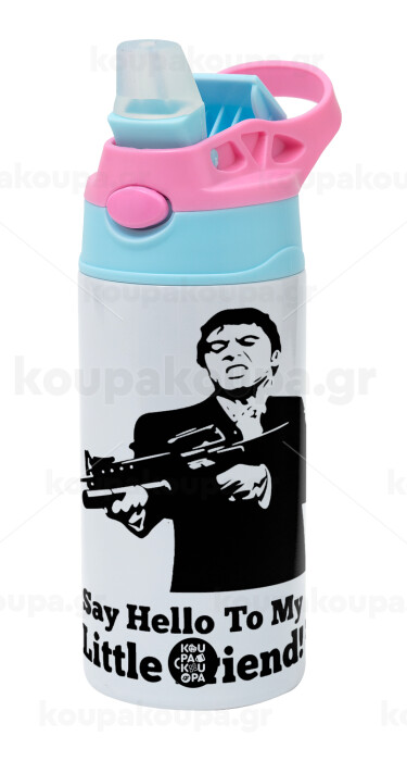Scarface, Children's hot water bottle, stainless steel, with safety straw, Pink/BlueCiel (360ml) BPA FREE
