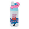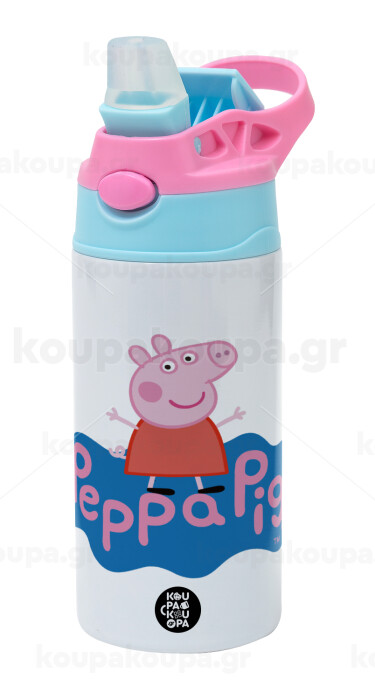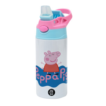 Πέππα το γουρουνάκι μπλε με όνομα, Children's hot water bottle, stainless steel, with safety straw, Pink/BlueCiel (360ml) BPA FREE