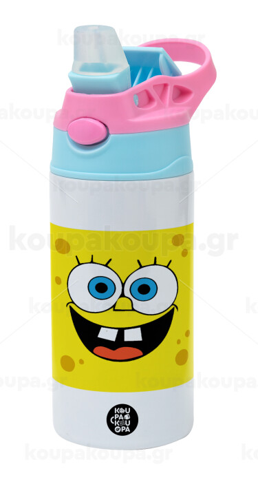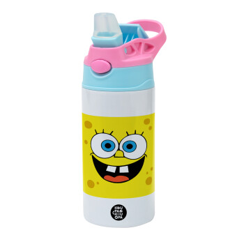 BOB, Children's hot water bottle, stainless steel, with safety straw, Pink/BlueCiel (360ml) BPA FREE