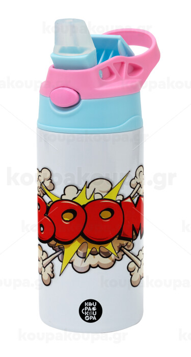 BOOM!!!, Children's hot water bottle, stainless steel, with safety straw, Pink/BlueCiel (360ml) BPA FREE