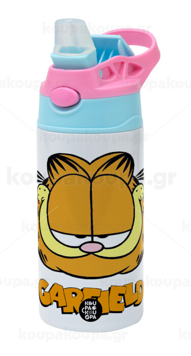Garfield, Children's hot water bottle, stainless steel, with safety straw, Pink/BlueCiel (360ml) BPA FREE