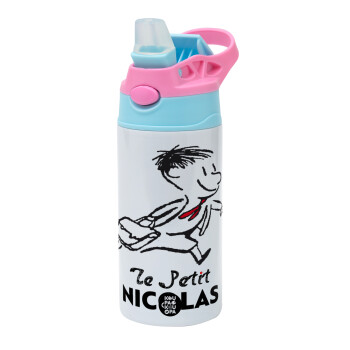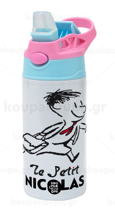 Le Petit Nicolas, Children's hot water bottle, stainless steel, with safety straw, Pink/BlueCiel (360ml) BPA FREE