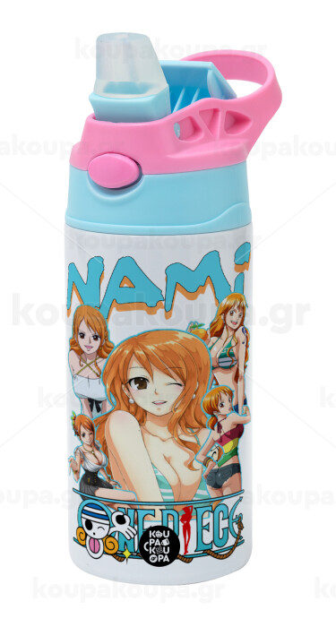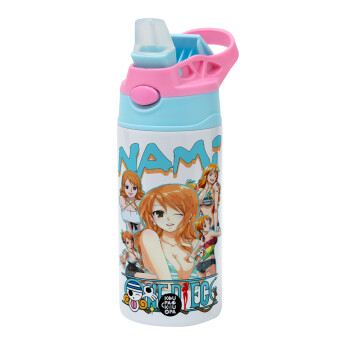 Nami One Piece, Children's hot water bottle, stainless steel, with safety straw, Pink/BlueCiel (360ml) BPA FREE
