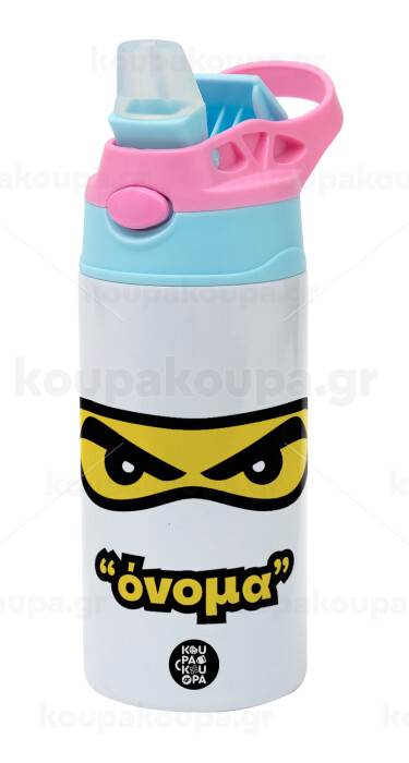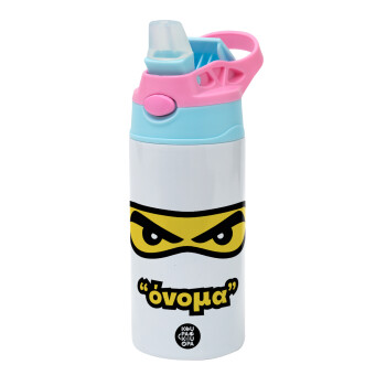 Ninja Eyes με όνομα, Children's hot water bottle, stainless steel, with safety straw, Pink/BlueCiel (360ml) BPA FREE