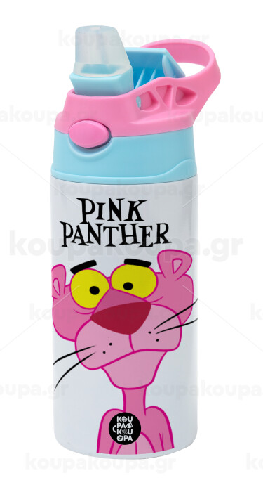 Pink Panther cartoon, Children's hot water bottle, stainless steel, with safety straw, Pink/BlueCiel (360ml) BPA FREE