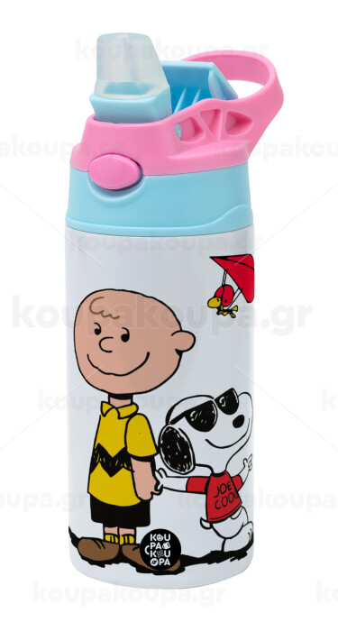 Snoopy & Joe, Children's hot water bottle, stainless steel, with safety straw, Pink/BlueCiel (360ml) BPA FREE