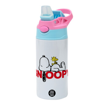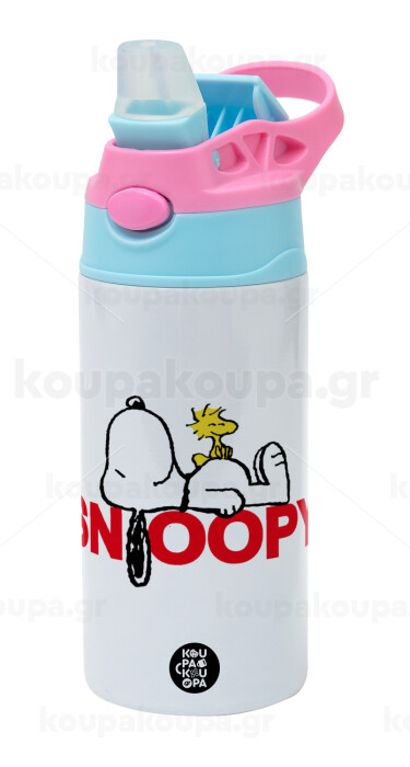 Snoopy sleep, Children's hot water bottle, stainless steel, with safety straw, Pink/BlueCiel (360ml) BPA FREE