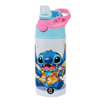 Stitch Ice cream, Children's hot water bottle, stainless steel, with safety straw, Pink/BlueCiel (360ml) BPA FREE