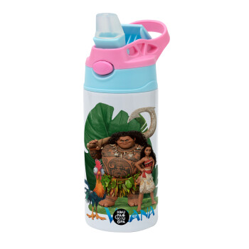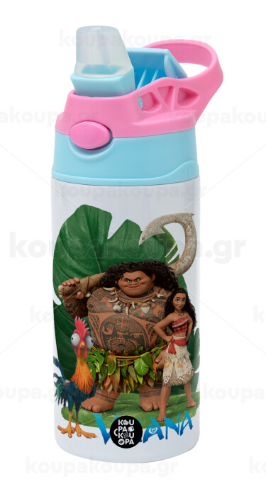 Vaiana, Children's hot water bottle, stainless steel, with safety straw, Pink/BlueCiel (360ml) BPA FREE