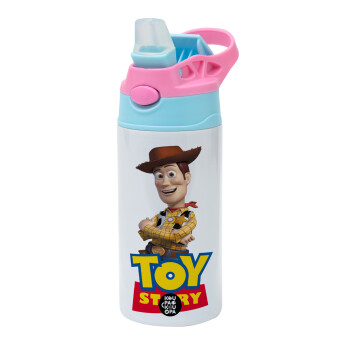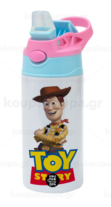 Woody cowboy, Children's hot water bottle, stainless steel, with safety straw, Pink/BlueCiel (360ml) BPA FREE