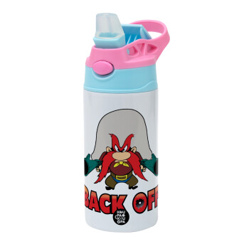 Yosemite Sam Back OFF, Children's hot water bottle, stainless steel, with safety straw, Pink/BlueCiel (360ml) BPA FREE