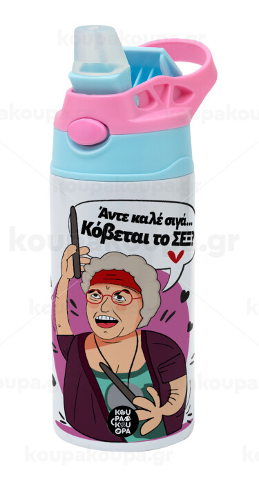Αντε καλέ, σιγά, κόβεται το σέξ ;, Children's hot water bottle, stainless steel, with safety straw, Pink/BlueCiel (360ml) BPA FREE