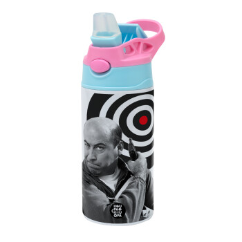 Θου Βου Φαλακρός Πράκτωρ, Children's hot water bottle, stainless steel, with safety straw, Pink/BlueCiel (360ml) BPA FREE