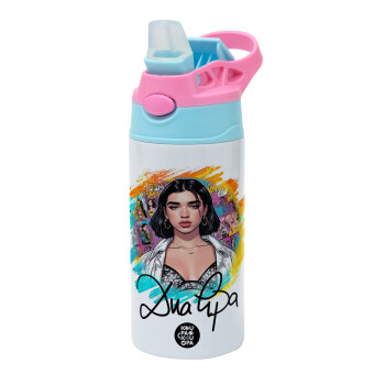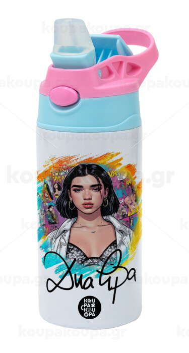 Dua lipa, Children's hot water bottle, stainless steel, with safety straw, Pink/BlueCiel (360ml) BPA FREE